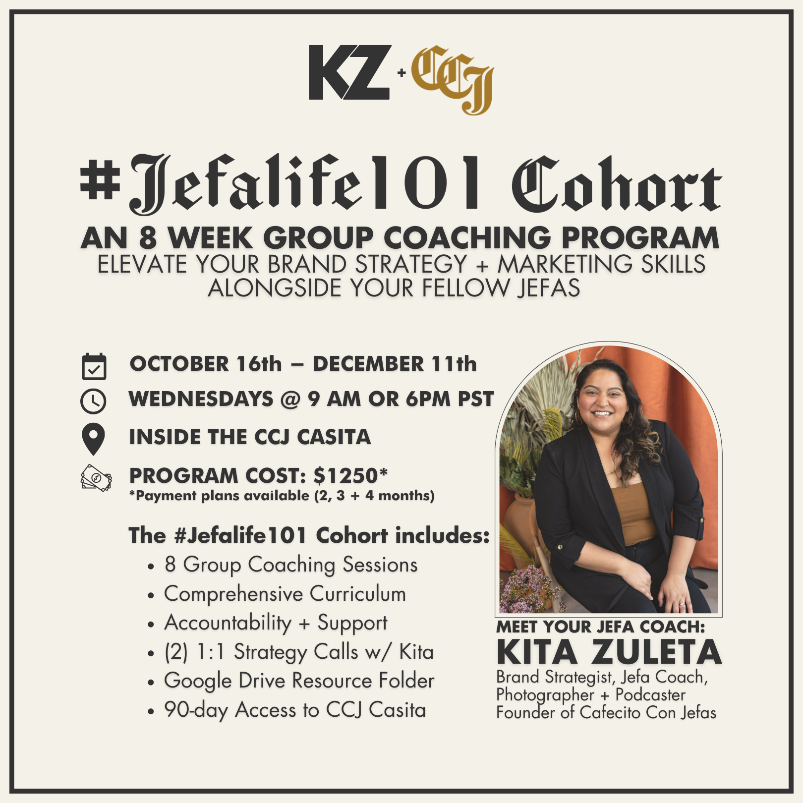 Join our exclusive 8-week cohort where we dive deep into the essentials of #jefalife, tailored specifically for Jefas looking to grow their business and start showing up online. The next live round kicks off October 16th!